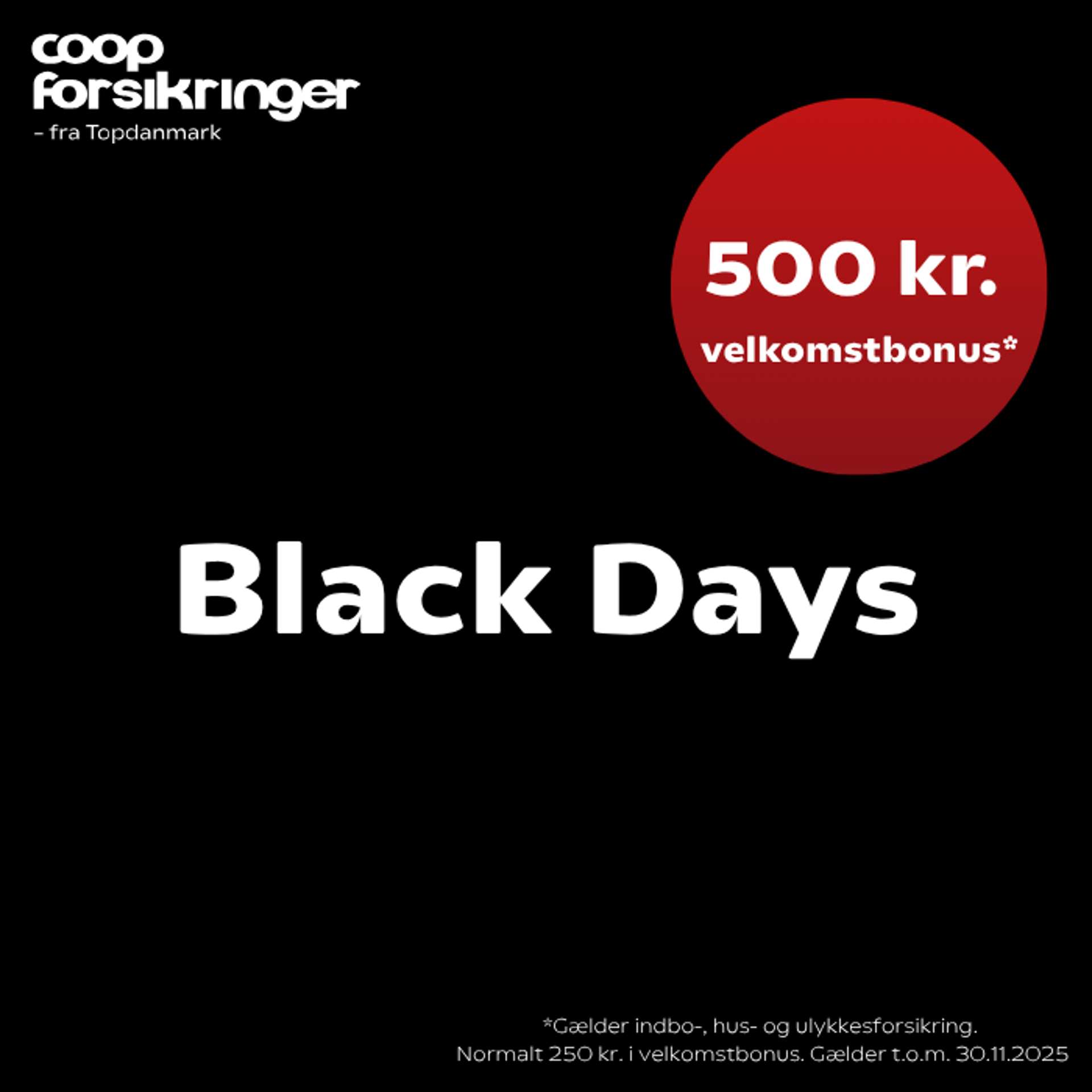 Coop Forsikringer fra Topdanmark fejrer fødselsdag, og derfor får du 500 kr. i velkomstbonus på bil-, indbo-, hus- og ulykkesforsikring frem til d. 13/4 2025!