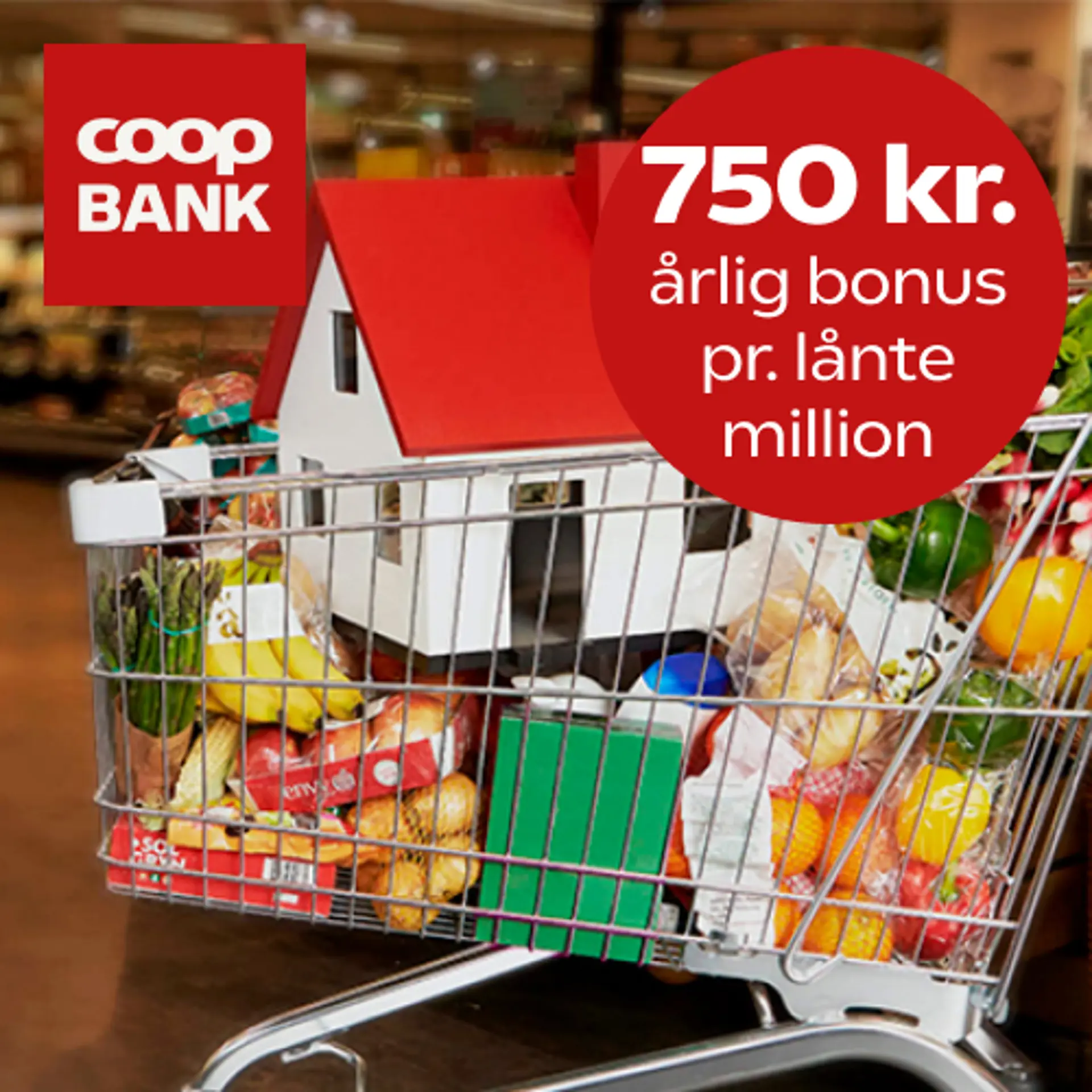 Coop Bank forsøger altid at gøre hverdagen så billig som mulig for medlemmer af Coop. Derfor kan du få bonus på dit realkreditlån.